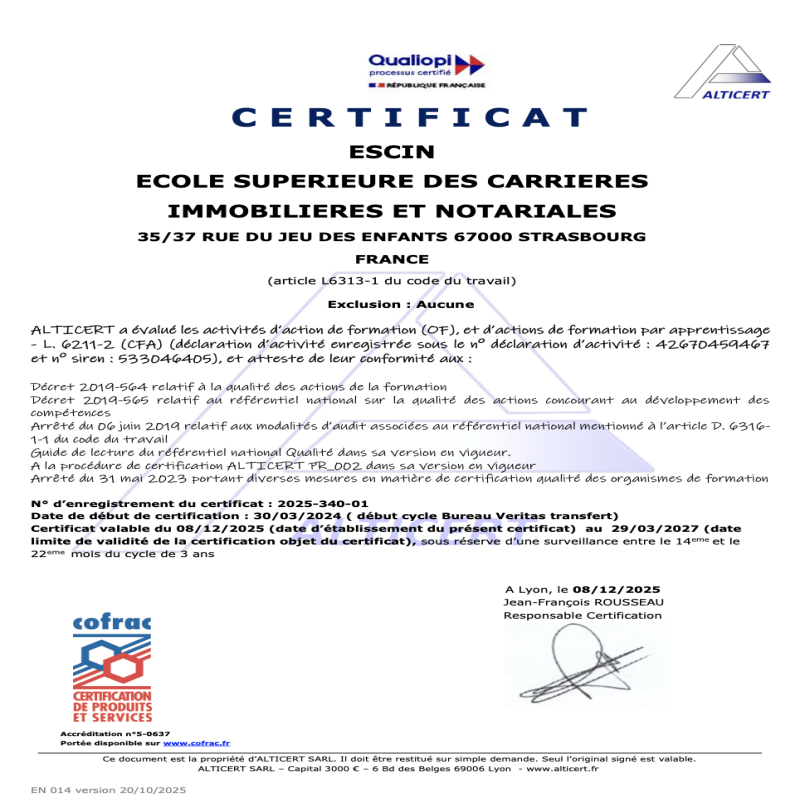 Parce qu’en 1 an vous maîtrisez l’essentiel : prospection, estimation, vente/location, négociation jusqu’à la signature, conseil juridique/technique/financier et outils digitaux — pour être opérationnel dès la sortie.
